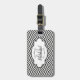 Denna härliga bagagemärkre presenterar en sparreranddesign av svartvitt beklär på och drar tillbaka med områden som du kan skräddarsy med ditt namn och den initiala, såväl som telefonnummer eller fulla adressen för efternamn.