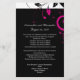 Dold och slående modern contemporarys svarta bröllopsinbjudan med vita och magenta accenter, med delikat kort rulla löv bakgrund. Anpassa onlinen med bröllop-informationen.