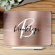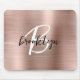 Den här personligen i elegant har ett monogram och första namn i ett modernt svartvitt skript på trendigets bakgrund ro guld, borstat metall.