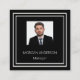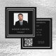 En klassisk svart bakgrund och faux silver ramar. Anpassa och lägg till foto, namn och text på framsidan. Tillbaka: Mallar för namn, titel, mobilt nummer, e-post och webbplats adress, QR-kod till webbplatsen eller social-mediekontot.