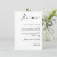 Ange en tidslinje vid mottagningen med det här bröllop-menykortet för elegant svart och vitt, med en minimalistisk layout med skript för chic och serif-typografi. Perfekt för modern, formell eller svartvit bröllop, den här rena designen presenter för kurser i ett klassbart och lättläst format. Helt anpassade med namn, datum och val av måltider är ett snyggt sätt att höja din inställning för bord. Para vackert med teman neutralt, enfärgad eller klassisk bröllop.