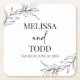 Svartvit minimalistisk Gren Löv Bröllop Underlägg Papper Kvadrat