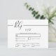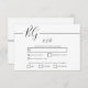 Den här utformningen har ett svart och vitt minimalistiskt monogram för eleganten. Bröllop-datumet ligger ovanpå den rad som grupperar initialer från bruden och brudgummen. Svart och vit skripttypografi bröllop-design. Kombinationen av svart och vitt färg skapar ett sofistikerat, trendig och chic stil. Utformning av responskort från elegant bröllop med modernt inslag. Det finns också möjlighet att matcha bröllopsinbjudningar och kontorsartiklar.