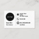 Ett elegant och modernt svartvit minimalistiskt affärskort med ett fet monokromt estetiskt utseende. Den här utformningen har en cirkulär logotyp, ren layout och kontaktuppgifter för professionellen och är perfekt för professioneller, företagare, småföretag och moderna varumärkesbehov. Dess enkla men ändå slående utformning garanterar en tidslängd och elegant. Designen har svart skript och logotyp och vit bakgrund.