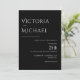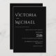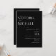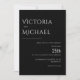 Vackert typsnitt på fet elegant svart bakgrund användes för att skapa denna vackra, moderna bröllopsinbjudan. En inbjudan till perfekt för vilken säsong som helst bröllop. 100 % kundtillfredsställelse med Zazzle varje dag.