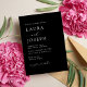 Den moderna elegansbröllopsinbjudan i svart och vitt är perfektens val för par att planera en chic och contemporary firande. Med sin eleganta och sofistikerade utformning inbjuder detta kostym till en rad olika bröllop stilar, från högtidliga svarta evenemang till snyggtens stadstävlingar och minimalistiska utomhusmöten. Den tidlösa monokroma paletten erbjuder mångsidighet, skapar den perfekt för intima mottagningar, elegant domstol bröllop och storkvällsaffärer. Denna inbjudan är designad för att förmedla en modern förfining och utgör ett steg mot en minnesvärd och snyggt bröllopsdag.