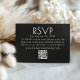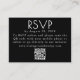 Modern Black Bröllop OSA Card med QR-kod. Slimmad, smart och seriös snyggt - den här djärva svarta OSA kort för en modern kant till din bröllop-svit. Med skarp vit text på djup monokrom bakgrund är det perfekten som matchar minimalistiska vibes och contemporary. En anpassningsbar QR-kod gör att man kan svara på en säck - gästerna kan helt enkelt söka efter OSA och visa all extra-information som är rak från deras mobila eller surfplatta. Designat för par som med kärlek har höjt enkelheten, bekvämligheten med teknikframförhållning och en liten bit av påstående stil, är det här OSA kort som chicens utformning möter smart funktion.