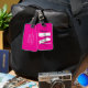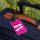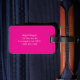 Ett svart, sött trendig-skript för hennes namn över ett vitt, fetstilt, modernt brev mot solitt, giftigt shock rosa. Ändra typsnittet stil, storleka och färg så att det stämmer överens med hennes stil. En fin bagagetong för din dotter som åker till college.