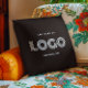 Lägg till din egen moderna, rektangulära, vita eller färgstarka logotyp i stil för att skapa kampanjkvadratdekorativ kudde. Anpassa teckensnittet stil, storlek och färg så att det passar dina affärsbehov. Lägg till mer text efter behov för att skapa egna kampanjhemdekorobjekt. Ändra den svarta bakgrunden färg efter behov för att matcha ditt företags färger.