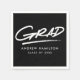 Moderna studenten-blöjor med "Grad" som visas med vit handskriven text med svart bakgrund. Anpassa de svarta och vita studenten-blöjorna genom att lägga till student namn och studenten. Personlig studenten-blöjor är perfekt för både högskoleexamen och party.