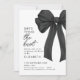 En modern tvist på gifter sig. Den här eleganten inbjudningskort för möhippan har en fet svart båge och minimal typografi, som skapar en sofistikerad snyggt som letar efter den brud som ska användas. Perfekt för monokroma teman, klassiska cocktail-nätter eller mode-forward firande. Anpassa enkelt med bridens namn, datum, tid och plats. Perfekt för möhippor, höns eller förlovning firande med en chic, modern kant.