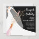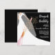 Brunch och bubblande inbjudningskort för möhippa har en brud i sin gåva och slöja på en svart bakgrund med en flaska av mousserande vin, glaspärlor och faux-sekviner med dina detaljer i chicens vita bokstäver. **TIP: Kvadratisk storlek KRÄVER EXTRA POSTAGE. MER färg i vår samling.