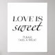Ge dig en elegans till duschevenemanget i par med minimalisterna "Kärlek Is Sweet", svarta och vita bordsskyltar från CaMiDesign. Dessa tecken på snyggt kompletterar alla dekorationer, skapar en varm och inbjudande atmosfär för firande. De är som en charmerande påminnelse om kärlek och tillsammans. Kontakta Zazzle Customer Care direkt om du vill ha hjälp med beställningar, frakt, produktinformation m.m.