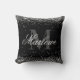 Elegant Silver Svarta och vita Monogram dekorativ kudde med ett kalligrafiskript för anpassade namn och fet monogrammall. En söt accentkudde för ett sovrum eller sovrum på college.
