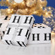 Elegantens svarta och vita monogramhölje pappert. Perfekt för presentemballering. Studenten, bröllop, födelsedag.