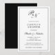Klassy par inbjudningskort för möhippan har en enkel design med dina två första monogram och namn i en elegant-kalligrafi inuti ett tunt gräns. Baksidan är solid svart. Den här klassiska svartvita designen är perfekt för en formell par-dusch.