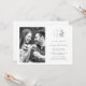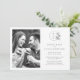 Svart och vit monograminbjudan till fotobröllop. Inbjudan visar på en tidlös sofistikering, perfekt anpassad för en klassisk affär och en affär i elegant bröllop. Dess minimalistiska utformning, med ett förfinat monogram adorberat med vin löv och parets initialer, fångar kärnan av underskattad elegans. Den skarpa kontrasten mellan svart och vitt gör chicen enklare och skapar det som ett idealiskt val för par att söka en sofistikerad men underskattad estetik för deras firande i bröllop.