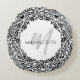 Den här elegantens kudde visar en skarp vit bakgrund som är framtagen av ett mönster av ornerad svart dämpare, som skapar en fet och tidlös design. I mitten visas ett redigerbart inledande monogram och anpassadets efternamn, vilket gör att du kan anpassa kudden till kostym i stil. Kontrasten mellan svart och vitt ger sofistikering, skapar det ett mångsidigt biet som fungerar utmärkt i både modernt och klassiskt insida. Perfekt som bröllop-gåva, födelsedagspresent, födelsedagspresent, gåva till husuppvärmning, eller som en formell dekorativ accent, tillför denna monogramkudde en liten finslipning till alla livsmiljöer.