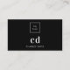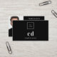 En svart bakgrund med vit text. Anpassa och lägg till din logotyp, monogrammet initialer och namn på framsidan. Tillbaka: Mallar för Profilfotot, namn, rubrik, mobilt nummer, e-post, webbplats adress, din egen qr-kod till webbplatsen eller social-mediekontot.
