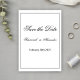 Låt din artikel i kärlek gå upp med vårt "Svartvitt, monogrammat, Bröllop" Spara datumkortet med den viktiga informationen om hur du sparar datuminformationen på framsidan och bridens monogram på baksidan. Detta minimalistiska mästerverk har en skarp vit bakgrund som är framtagen av ett sofistikerat svart gräns. Inuti, ditt namn, som är elegant skript i ett chic-skript tillsammans med rubriken Spara datum, tar du mittsteget bredvid ditt bröllop-datum, som presenteras i ett tydligt och lättläst modernt teckensnitt. Den här tidlösa designen är perfekt för par som behöver lite contemporary med en nod till klassisk elegans. Låt enkelheten tala mycket om era kommande nära och kära firande och inbjudan för att er lyckligt efter er.