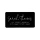 Moderna svarta returetiketter med ditt namn i ett handskrivet stil-teckensnitt och adress nedanför i ett modernt sans serif-teckensnitt. Du kan ändra bakgrund och teckensnitt färg till valfri anpassningsbar färg med hjälp av verktyg.