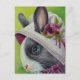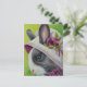 "Bunnies in Bonnets No. 4" Watercolor Art Postcard av Artist Jean Weiner "Bunnies in Bonnets No. 4" har en vacker, blå, blå, svart och vit kanin i nederländsk kanin med sin favoritbonnet vår. Hennes hatt idrottsar ett modernt lila-band och lila blommor. Var kan den här bunny vara på med en så charmig hatt? Den här teckningens visuella karaktär kommer säkert att göra alla älskare ljusare!
