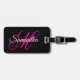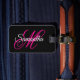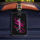 Ett gigantiskt personlig monogram med finare kalligrafi-skript som paras i shock rosa och vitt mot en solid färg-svart bakgrund. Skapa din egen smekmånadsresetagg för bruden. Anpassa teckensnittet stil med färg så att det matchar dotterns favoritskugga av rosa. Den blomning i finare som är en del av monogrammet kan behöva centreras om till din början. Sök i butiken efter andra finare monogram i olika färg-kombinationer.