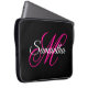 Ett gigantiskt personlig monogram med finare kalligrafi-skript som paras i shock rosa och vitt mot en solid färg-svart bakgrund. Skapa din egen söt tillbaka till skolan laptop sleeve för henne. Anpassa teckensnittet stil eller färg för att matcha dotterns favoritskugga av rosa. Den blomning i finare som är en del av monogrammet kan behöva centreras om till din början. Sök i butiken efter andra finare monogram i olika färg-kombinationer.
