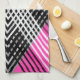 Svartvit och grått-sammanflätat rand på en kökshandduk