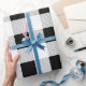 Minimalistisk svart vit och grått tartan mönster-presentrullar. Neutralt färg-dekoration.