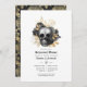 Viktig vintage blommigt dynga bröllop repetitionsmiddagsinbjudan i accenter från svart och guld anpassade till dina händelsespecifikationer.