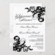 © 2013 Socialite Design. Vår vackra kalligrafi "Rehearsal Dinner"-text, med svart text på vit bakgrund och elegant svart och silver blomstrar, tillför lite elegans till denna inbjudan till repetitionsmiddag. Byt enkelt ut vår malltext till middagsfesten. Alla designade inslag kan ändras, flyttat eller tas bort.
