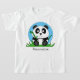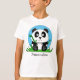 En berömvärd svart och vit panda bär sitta på lite gräs av färsk grönt och håller en grönt bambu-käpp. Nedan visas en mall som du vill lägga till i namn eller ett meddelande eller ta bort för att lämna tomt.