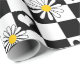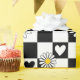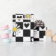 Inslagning av papper med svarta och vita checkar med daisy och hjärtan, perfekt för inslagning av barnfödelsedagspressar, babyduschar, Alla hjärtans dag och gåvor till någon som är speciell i ditt liv.