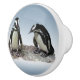 Den här keramiska dörrknoppen presenter två afrikanska Penguiner står på en klippig gupp. De är vattenlevande, färglösa fåglar vars vingar har blivit flippor. Var och en har svarta rand och svarta fläckar på bröstet. Mönster på fläckar är unikt för varje penguin, precis som mänskliga fingeravtryck.