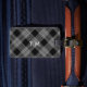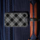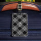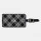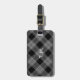 Svart och vitt diagonalt bagagetagg med inledande mongrammet.