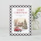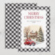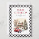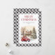Vattenfärgat lastbil God jul-kort med vintern och ett rött lastbil inuti en svart och vit buffel plaid ram.