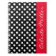 Svartvit Polka dots med röd dekorfärg Anteckningsbok