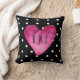 Svartvit polka dots - vattenfärgsfärgad hjärtsmono kudde
