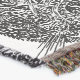 Svart och vitt prydnadsdjur på en katt, inspirerat av ett levande djur och ursprungligen ritat med penna på papper.
