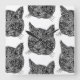 Svart och vitt prydnadsdjur på en katt, inspirerat av ett levande djur och ursprungligen ritat med penna på papper.