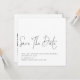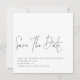 Elegant Script Black White QR Bröllop Spara Date. Tillgänglig digitalt och utskriven. Ett minimalistiskt, helt svart och vitt anpassade med ett informellt skript för huvudet och mycket tomt utrymme på en kvadratisk form för en contemporary stil. Lägg till QR-koden på din bröllop-webbplats på baksidan genom att helt enkelt ändra exempeladressen till din egen webbplats-URL och din QR-kod ersätter automatiskt exemplet QR-kod. Du kan ändra färg och bakgrund om du vill genom att redigera ytterligare alternativ.