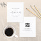 Skript QR-kod - enkel svart och vit. Ett budgetmässigt prist mindre än 4,5 x 5,6 tum alternativ. Finns i ett SEMI-GLOSS 110 lb-kort LAGRAR, vilket är standardalternativet (tjockare för inbjudningar), ELLER SATIN AVSLUTAR 80 lb PAPPER LAGRAR (perfekt för bilagor). Lägg till QR-koden på webbplatsen bröllop på baksidan. En enkel och elegant svart och vit design för dina gäster i inbjudan till sparan av ditt datum. Vänligt Spara Vårt datum finns i ett modernt skript i mitten.Resten av texten som du enkelt kan anpassa. Text- och bakgrundsterminen färg kan ändras om du vill förbättra kostym i bröllop genom att anpassa ytterligare alternativ.