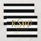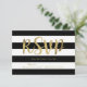 Modern bröllopsinbjudan - svarskort/svarskort för OSA med svart och vit strimlad bakgrund med guld folie-effektens OSA.