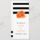 Elegant bröllop-ceremonin och party-programmet. Den visningar en underbar korallvallmoblomma och svart och vitt rand.