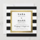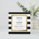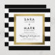 Moderna bröllopsinbjudningar med svart och vit rand-bakgrund med guld-folie, effekt ram.