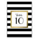 Moderna kort för bordsnummer i bröllop med svart och vit rand-bakgrund med guld-folie i ram.