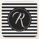Snyggt pappersmassa pappra underlägg som utförs i ett svartvitt vågrät rand mönster. En svart dekorativ cirkel, mitten i underlägg, har ett vitt monogram brev. Anpassa brev till kostym efter dina behov. Underbar när som helst använda och gör en trevlig presentidé.