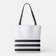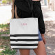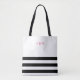Anpassa den här chicen med svart och vit rand till väskan med dina tre första monogram i kontrasterande rosa av magenta för en påse som är unik för din egen! Vit tallrik med svarta band har ett brett svart rand över grund och ditt monogram överst i klassiska serif-bokstäver. "Anpassa" om du vill ändra typsnitt och färg för din egen unika design!