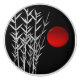 Bamboo träd och röd sol i svart, frusen cirkel ritad med bläck i traditionell japansk målning